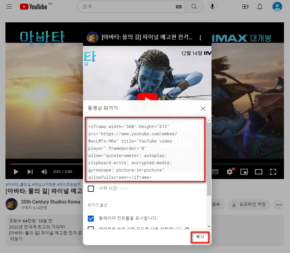 팝업되는 창에서 [복사] 버튼을 누릅니다.