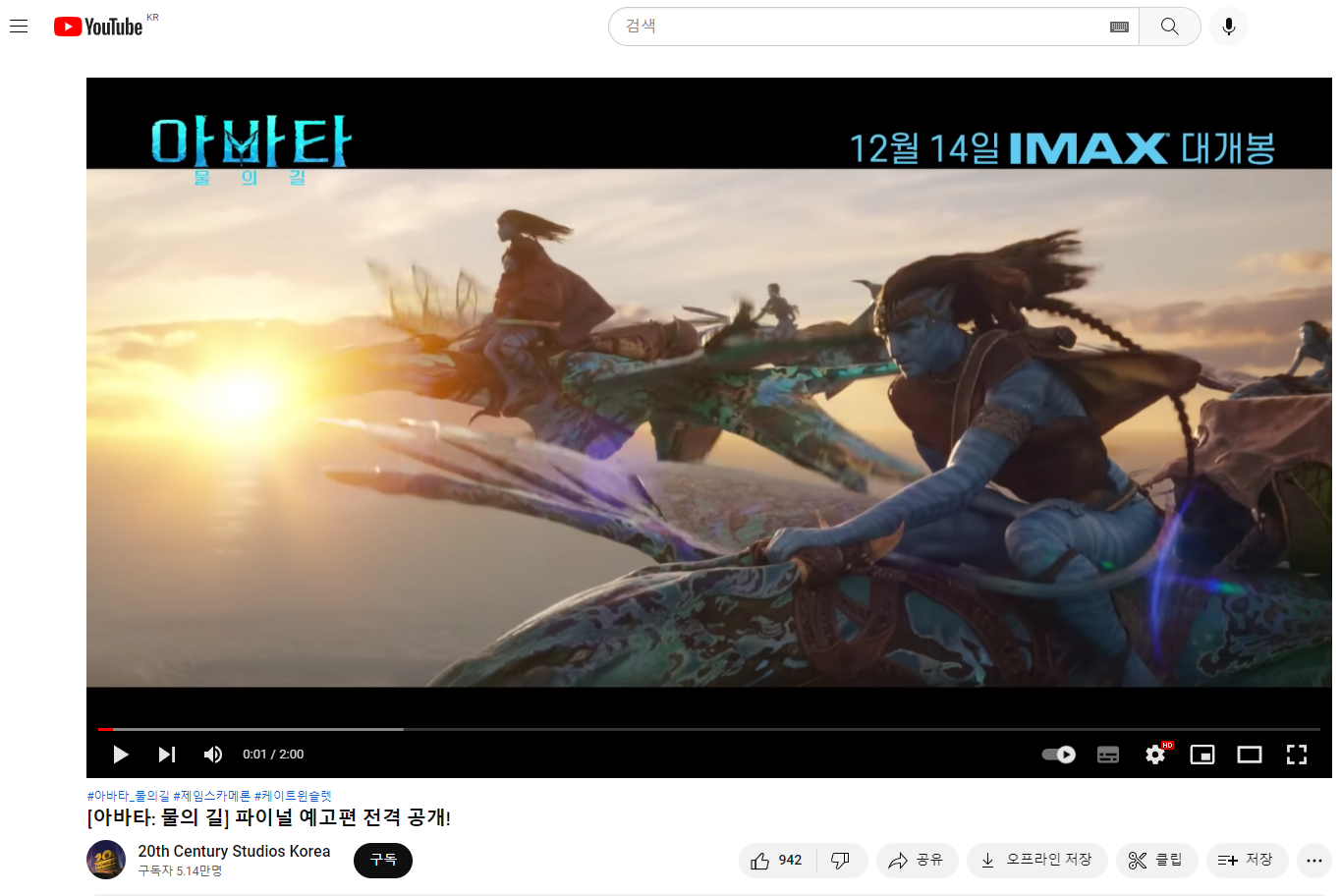 조만간 개봉한다는 <아바타:물의 길>