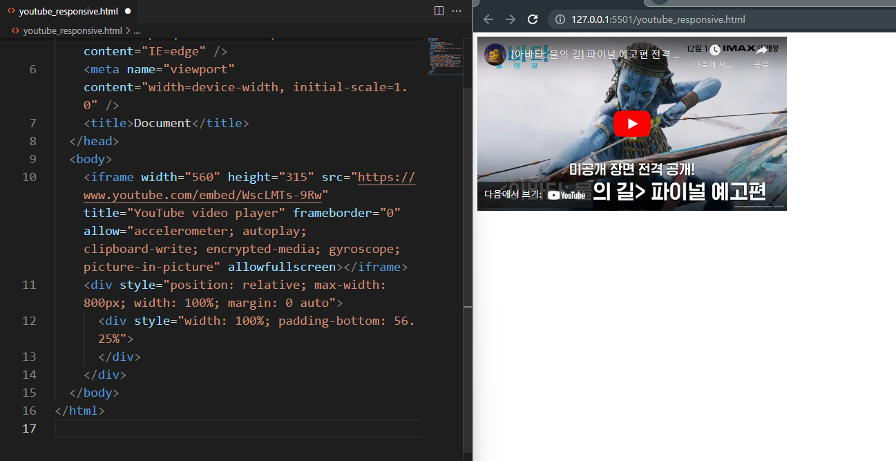 youtube 영상을 웹 페이지 내에