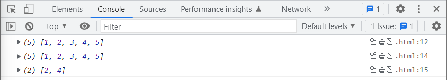 console.log를 변경 전후로 출력해보고 살펴보면, nums 배열에는 변화가 없고, evenNums에는 필터링을 통과한 원소들만 담겨 있는 것을 확인할 수 있습니다.