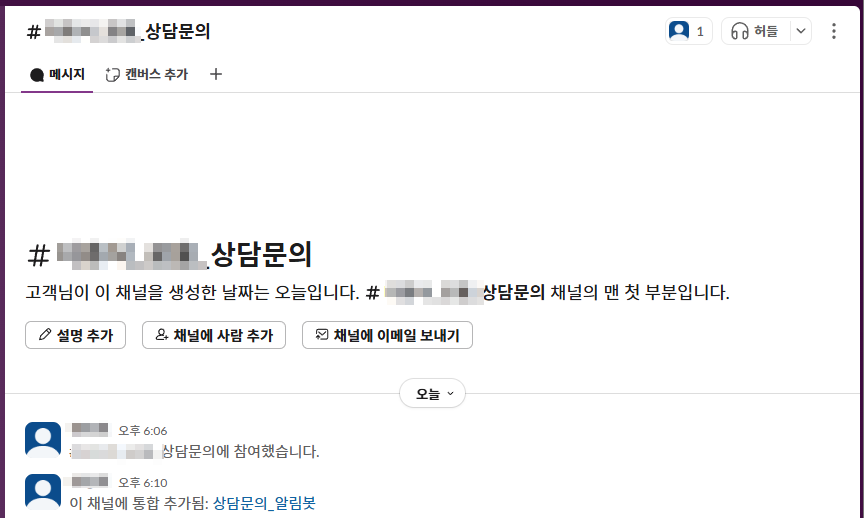 저는 이 웹훅의 결과로 새로운 메시지를 던져주는 녀석의 이름을 "상담문의_알림봇"이라고 지어보았습니다.