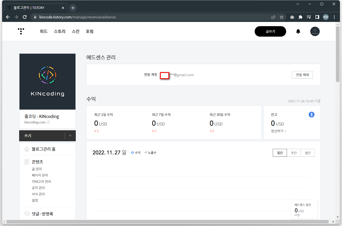 2. 애드센스(Google Adsense) 신청 - 2022년 11월 28일