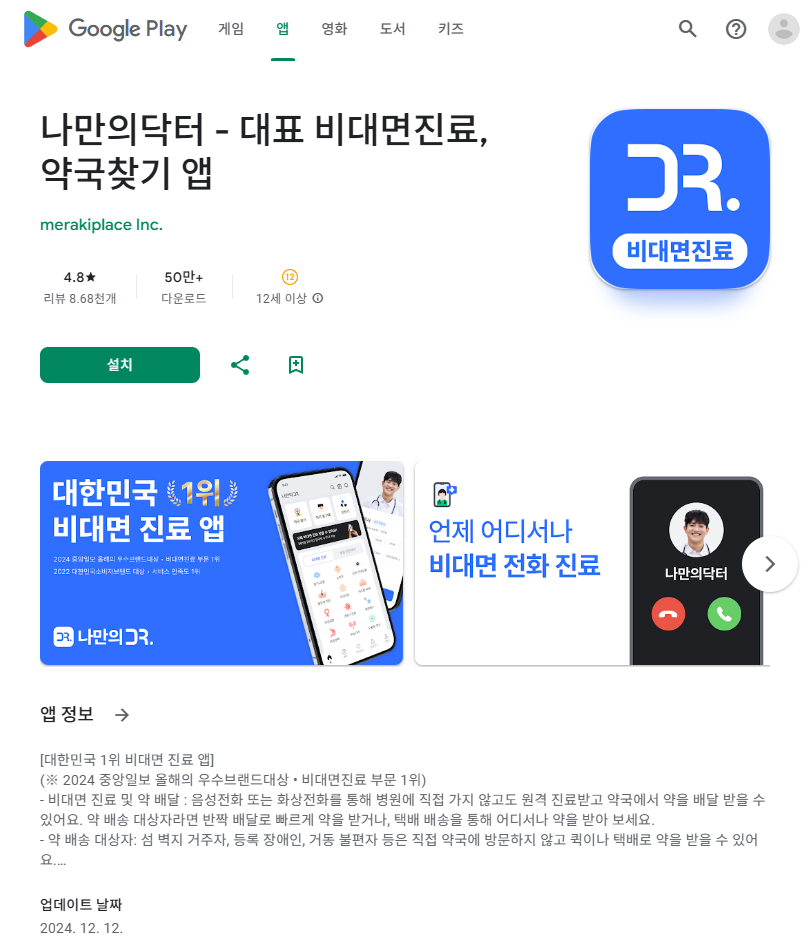 - 수상 경력이 빛나는 닥터나우: 구글 플레이 '올해를 빛낸 앱' 최우수상 수상! 믿고 사용할 수 있는 비대면 진료 앱입니다.