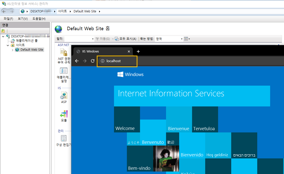 브라우저 주소창에 localhost라고 쳐 넣었을때, IIS 디폴트 화면이 나오면 성공!