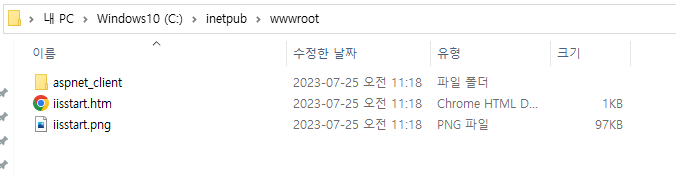기본적으로 설치된 IIS로 인해 만들어진 site의 기본 경로는