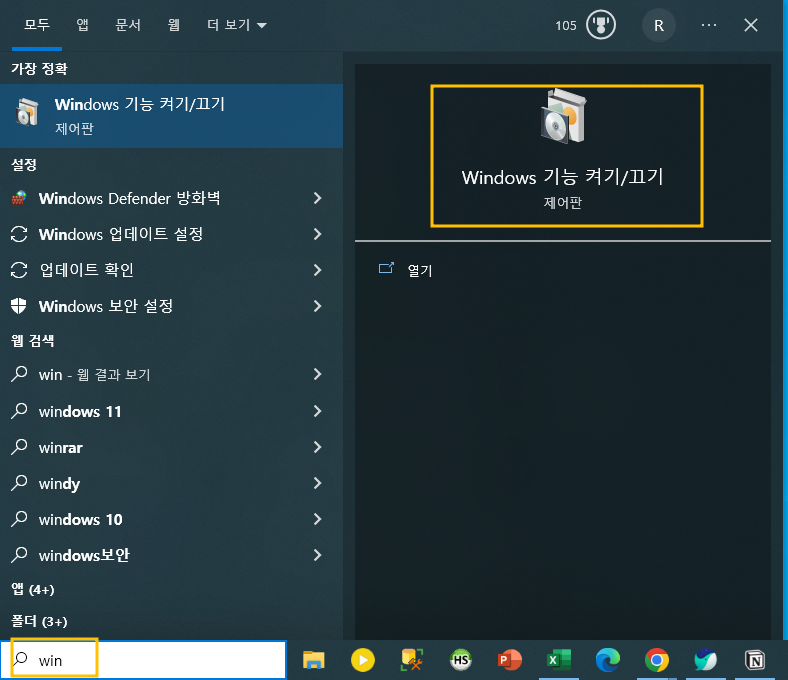 뭐, 그렇다고 합니다. 윈도우10 돋보기 검색에서, windows를 쳐 넣고 검색되는 Windows 기능 켜기/끄기를 실행합니다.