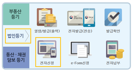 3. 법인등기의 전자신청 항목을 클릭