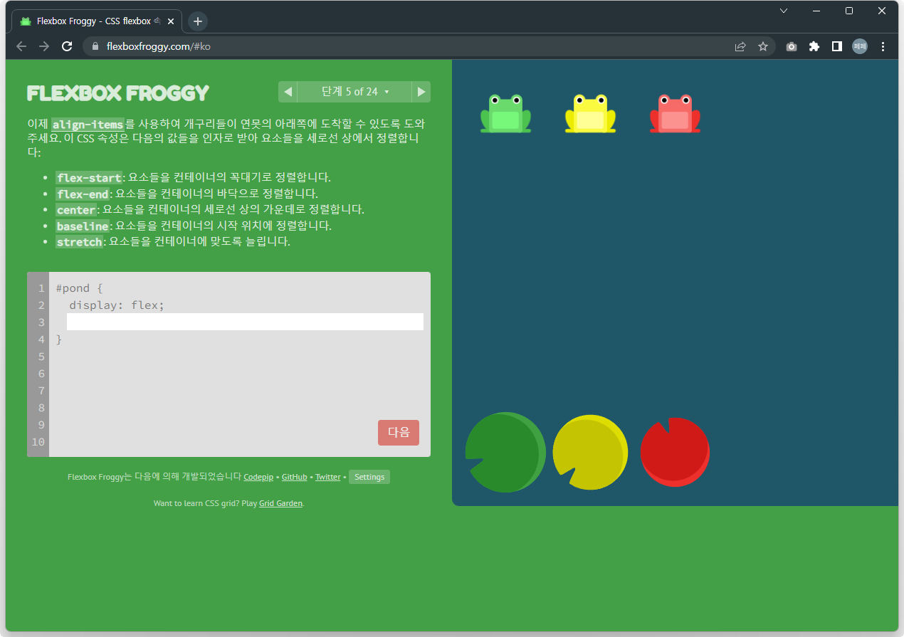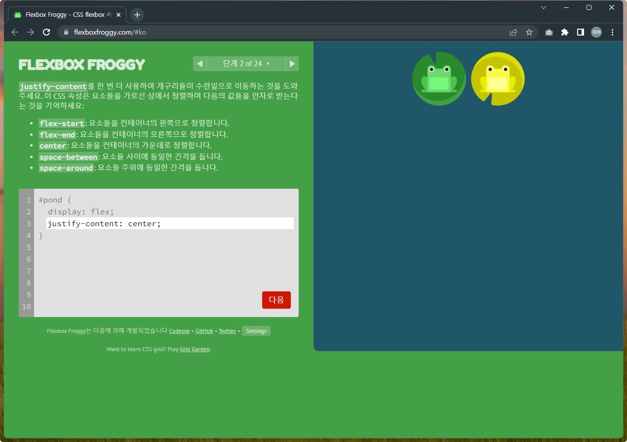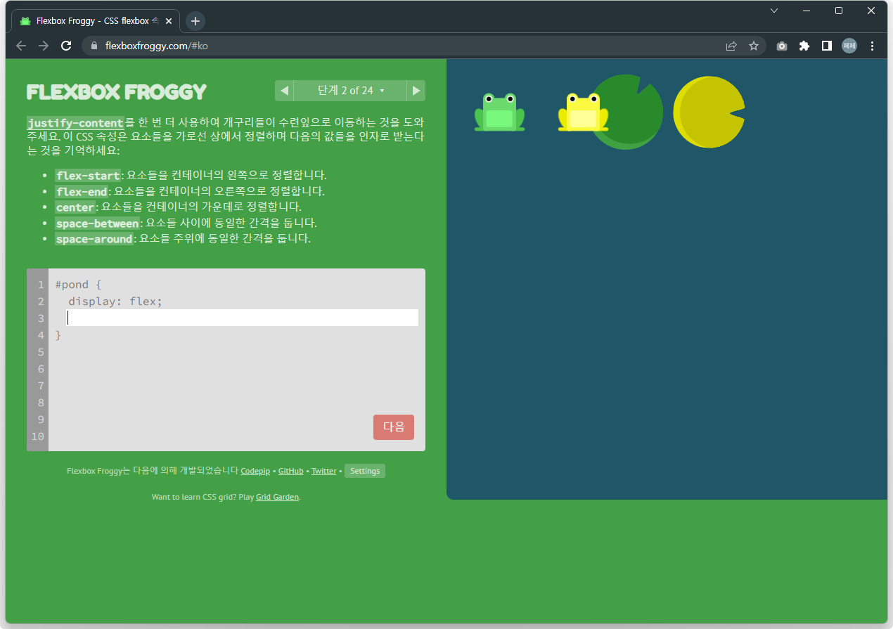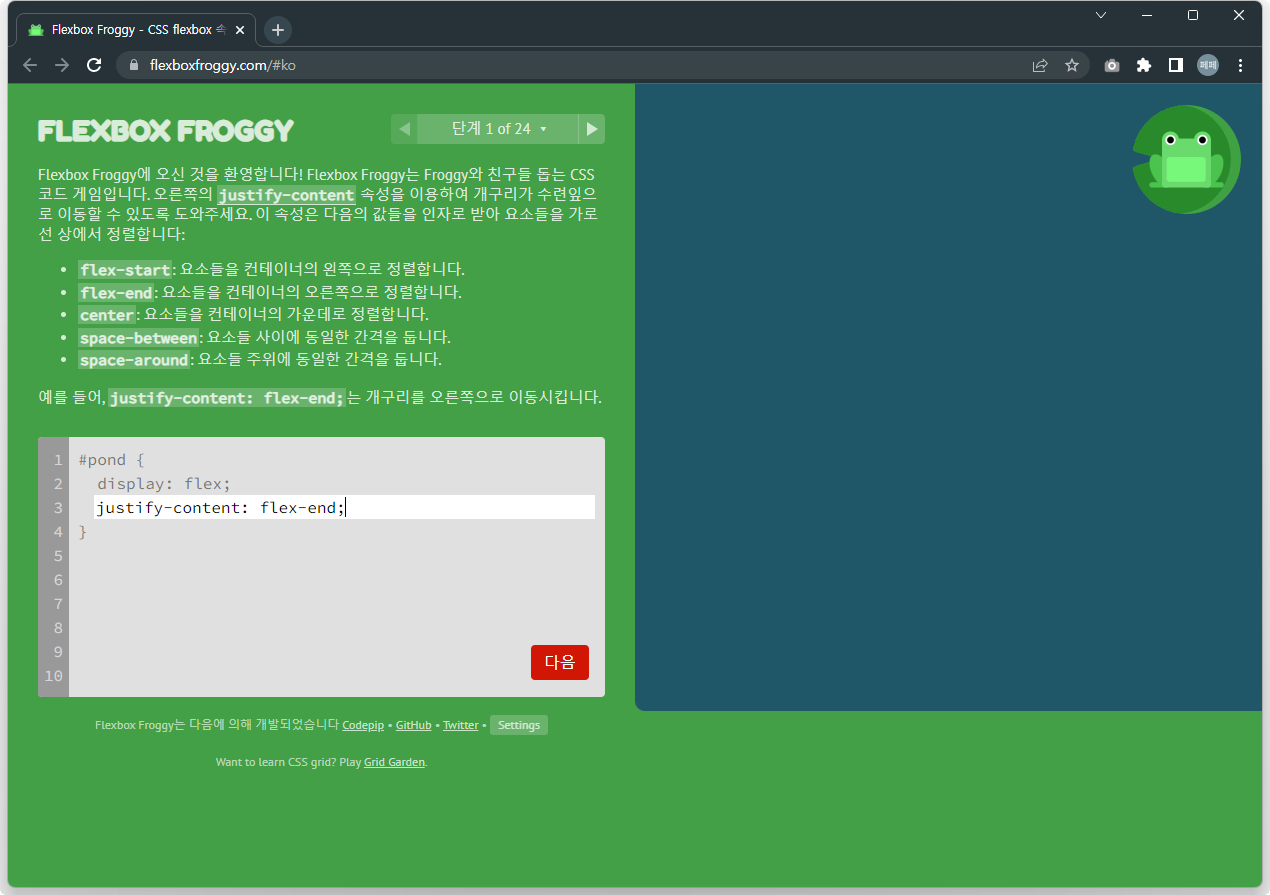 <Flexbox Froggy>라는 게임을