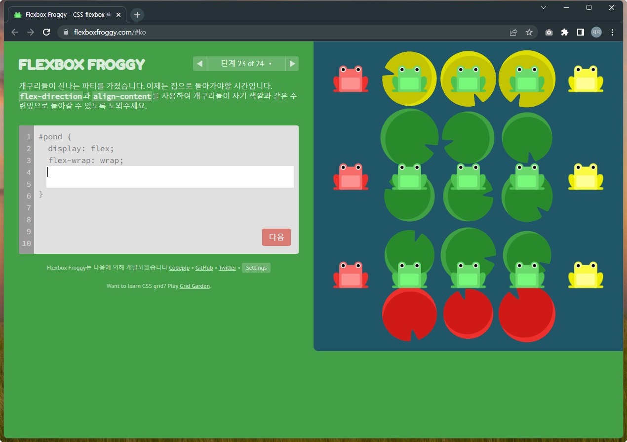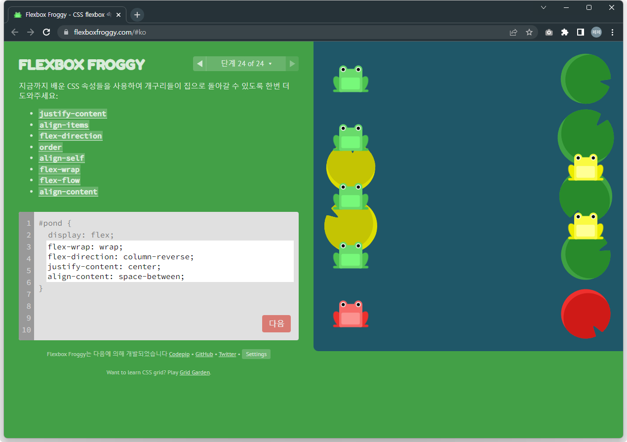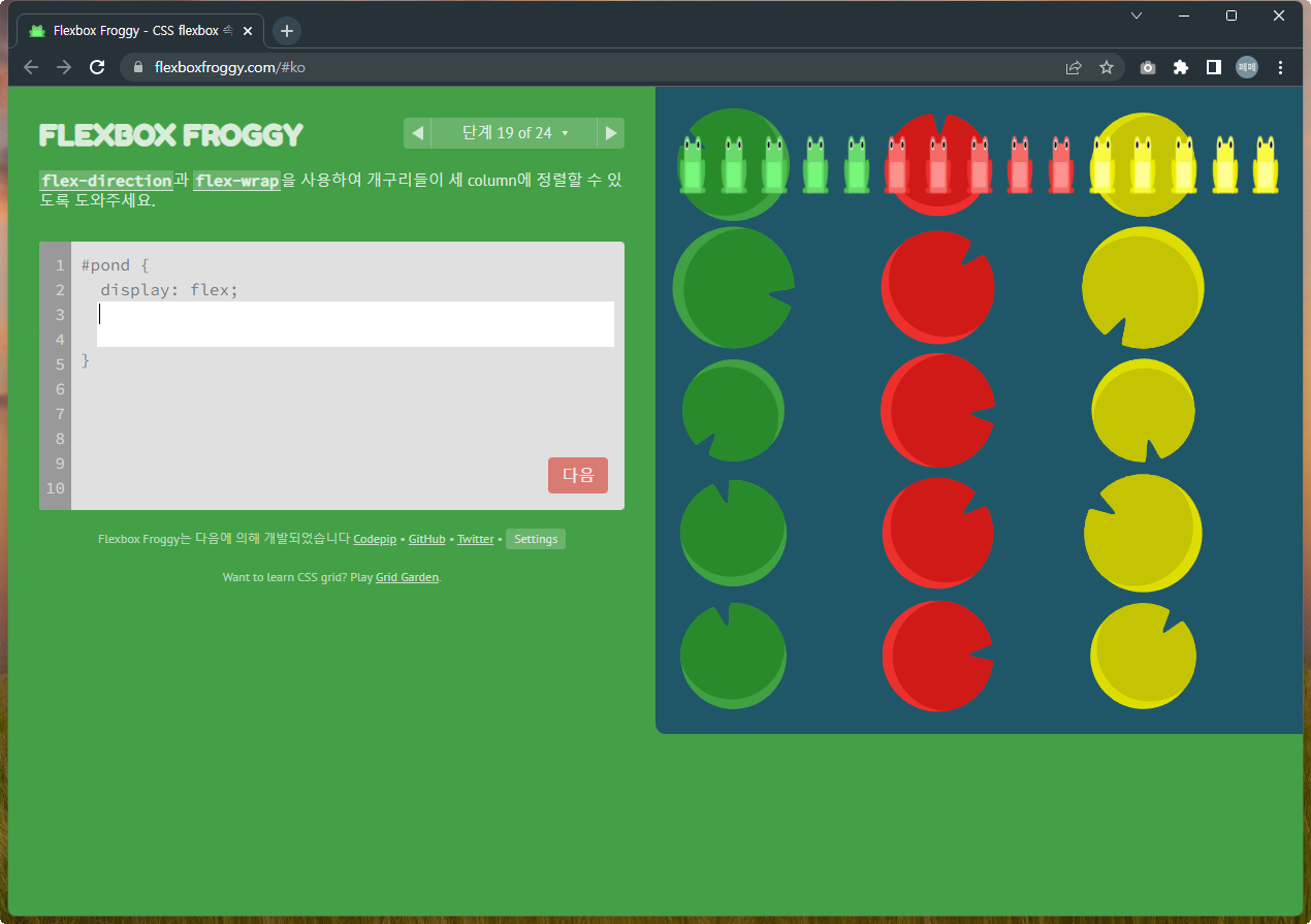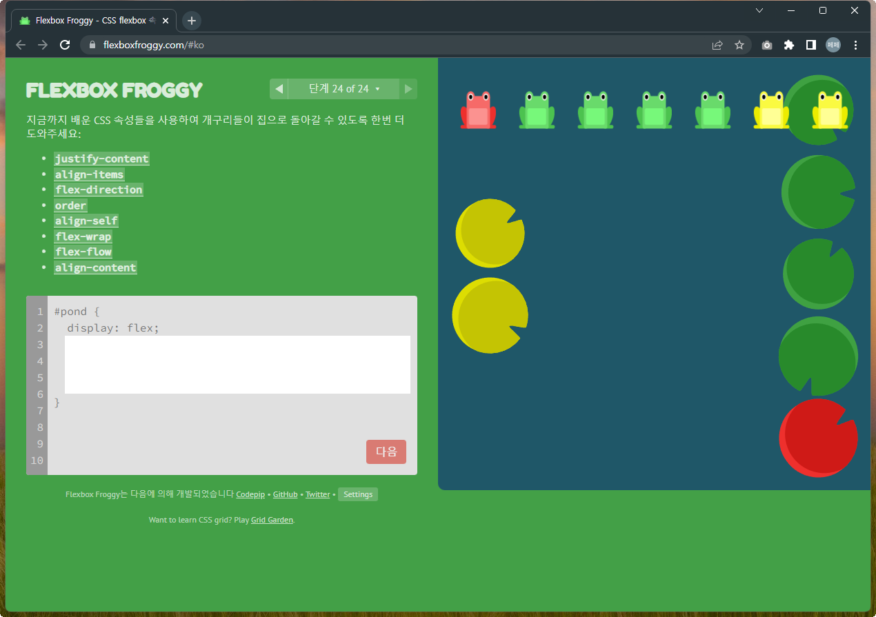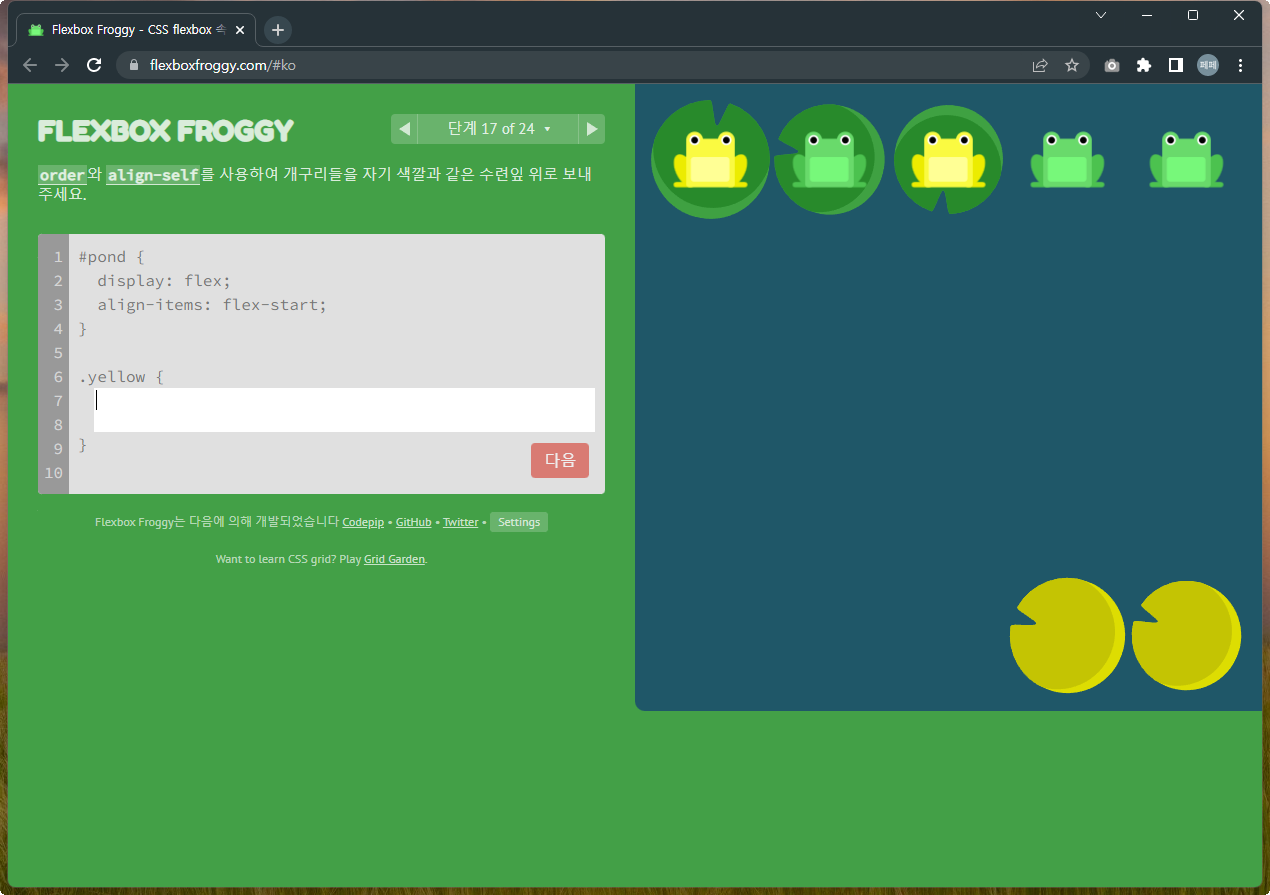 Flexbox Froggy 후반부를 풀어봅시다.