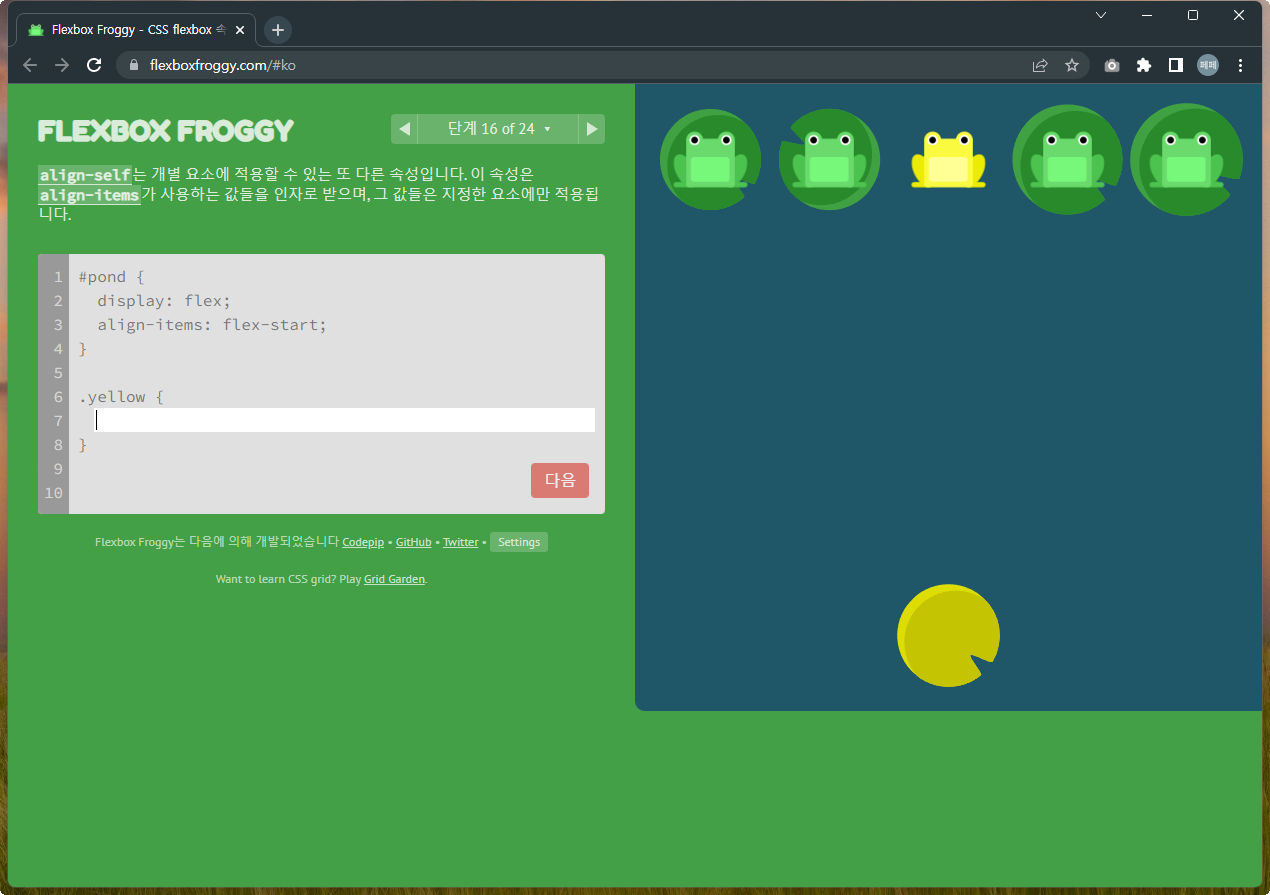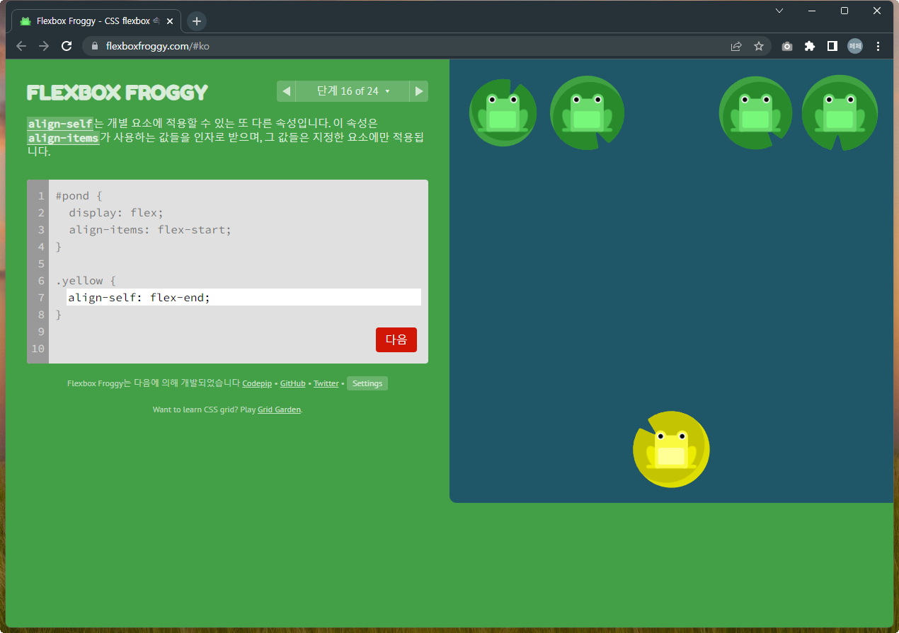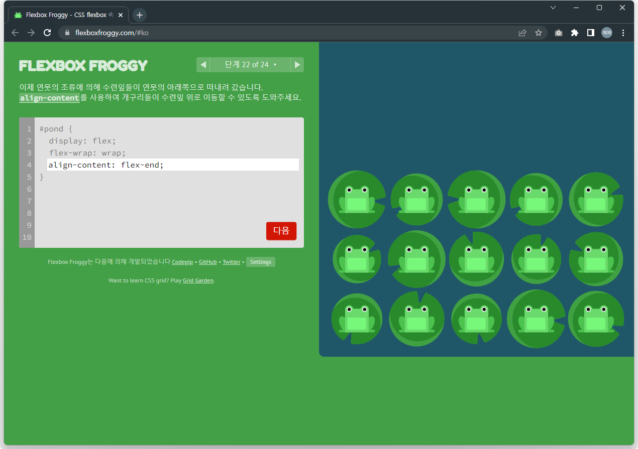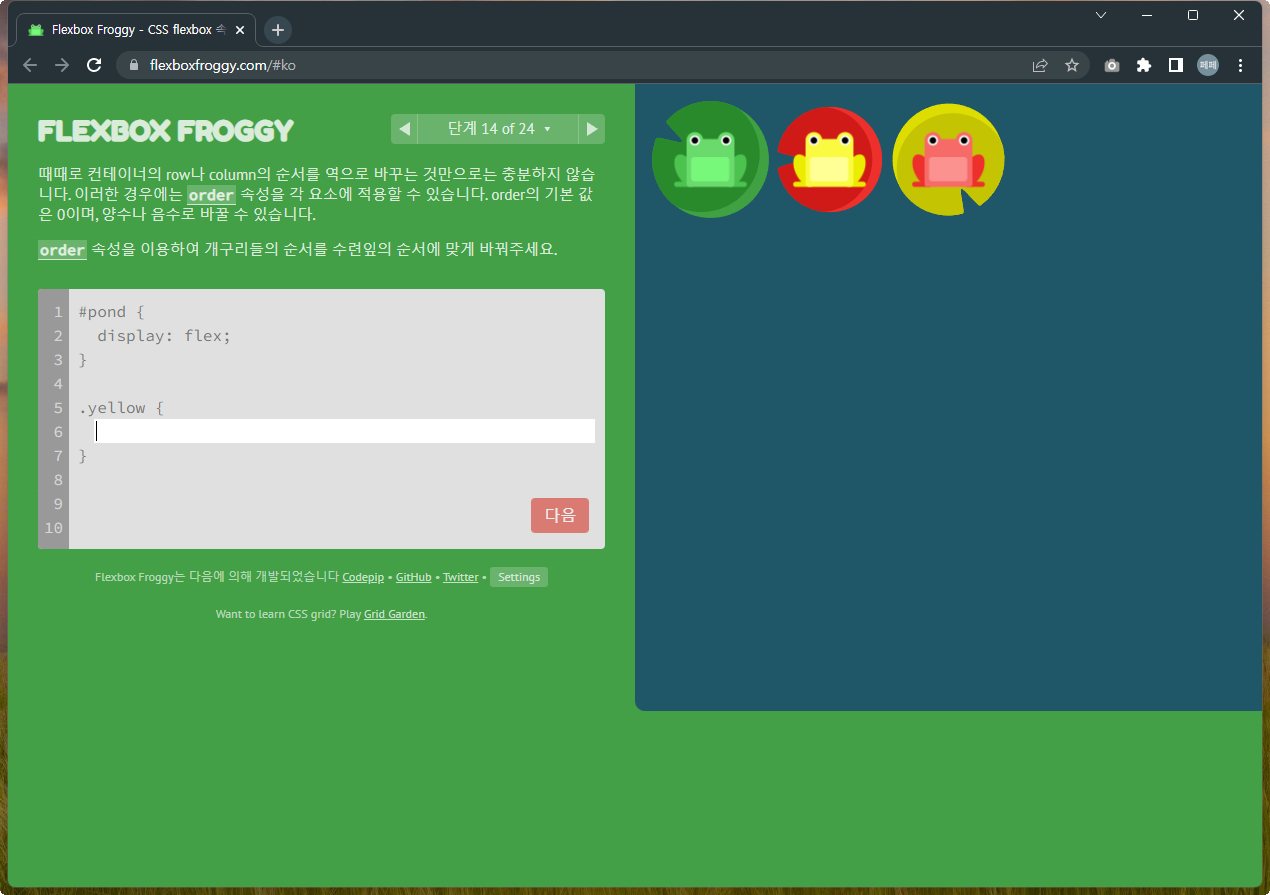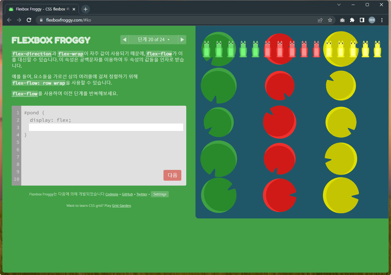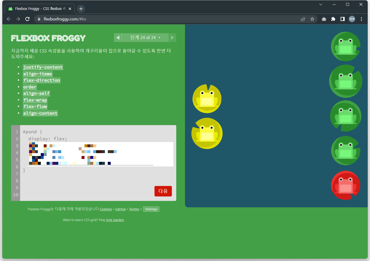 Flexbox Froggy 후반부를 풀어봅시다.