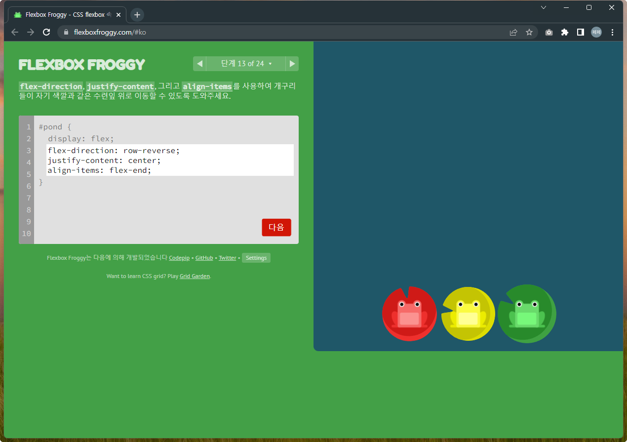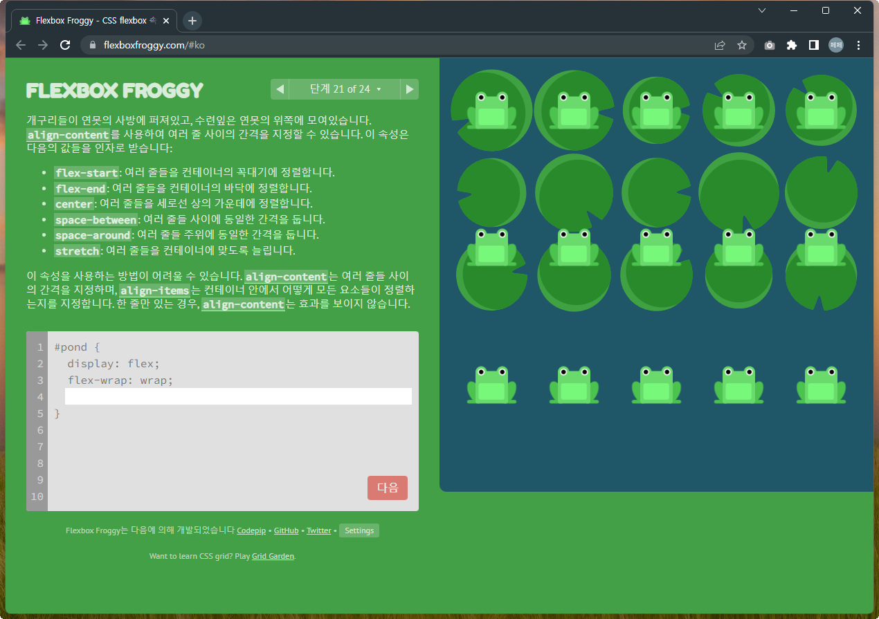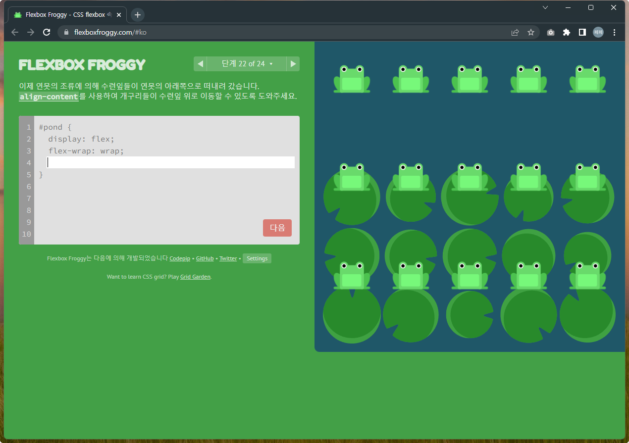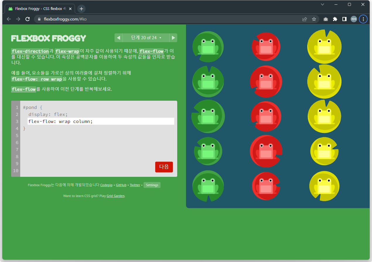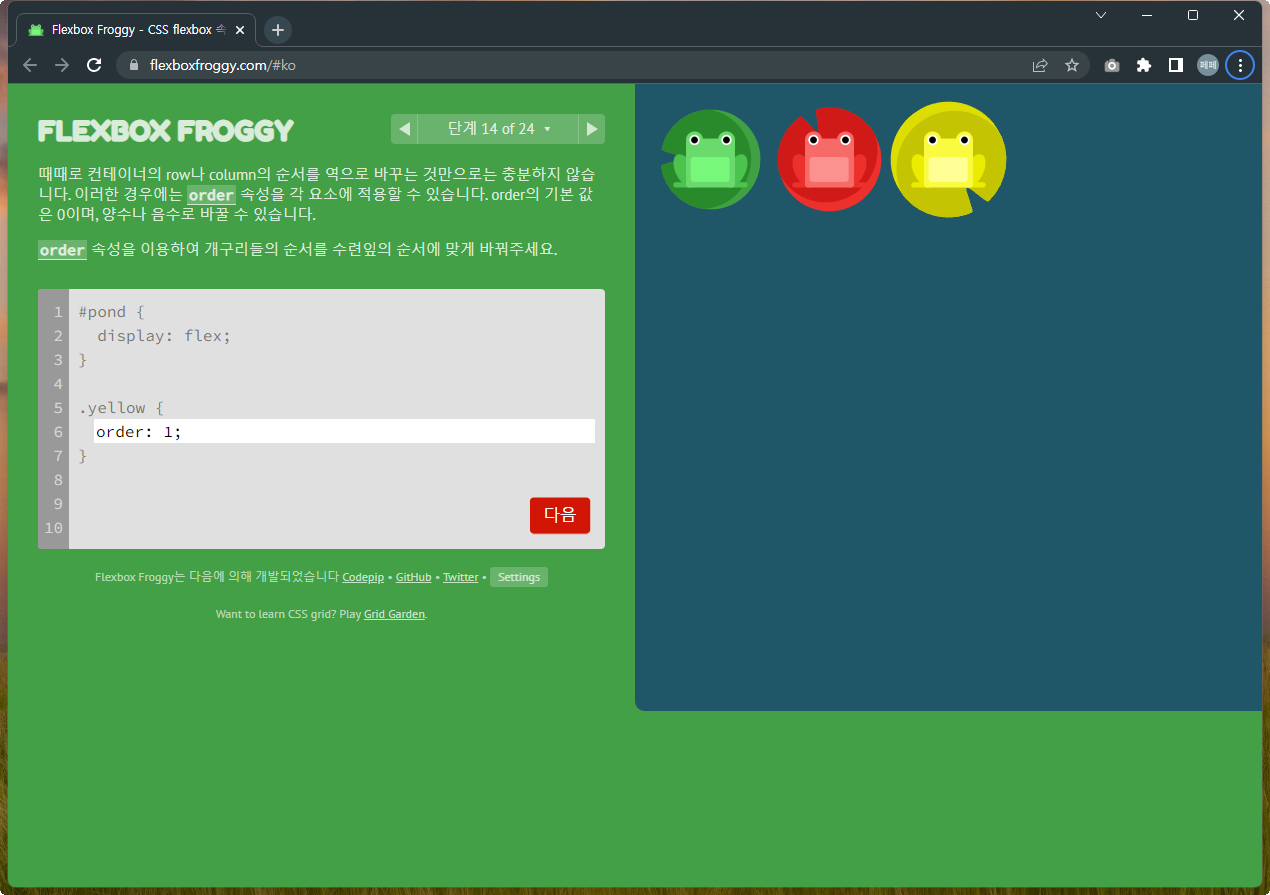 Flexbox Froggy 후반부를 풀어봅시다.