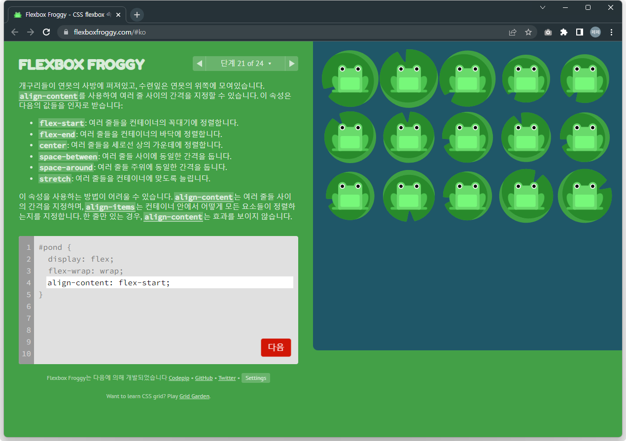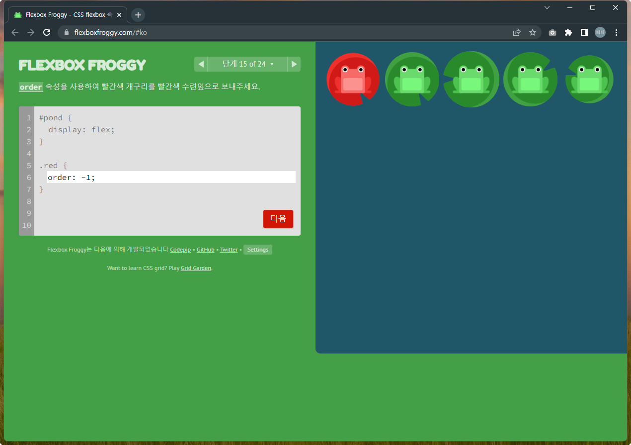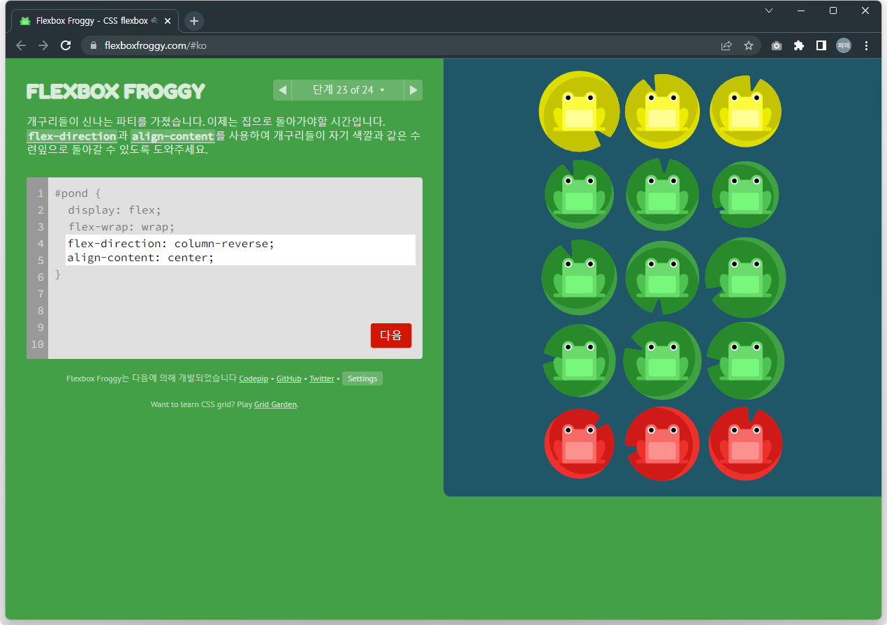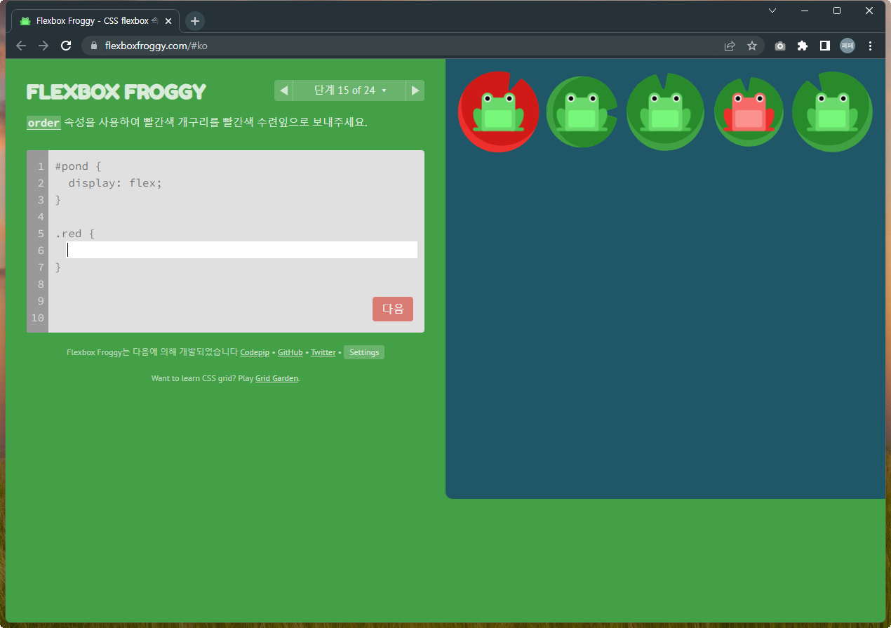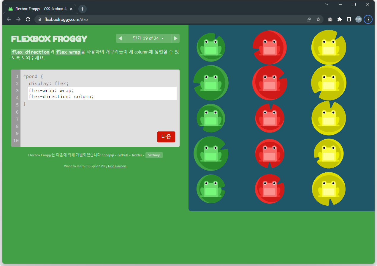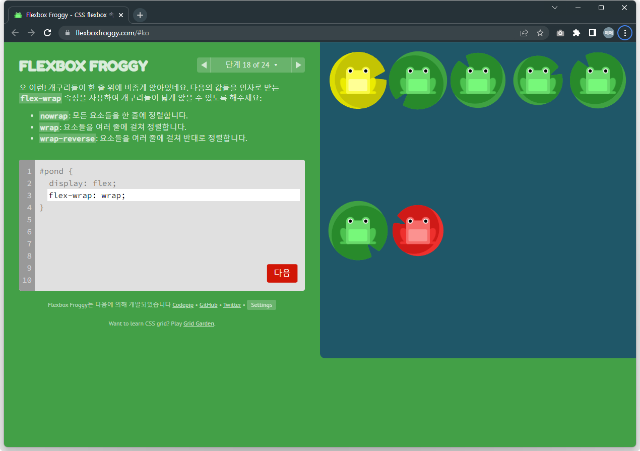 Flexbox Froggy 후반부를 풀어봅시다.
