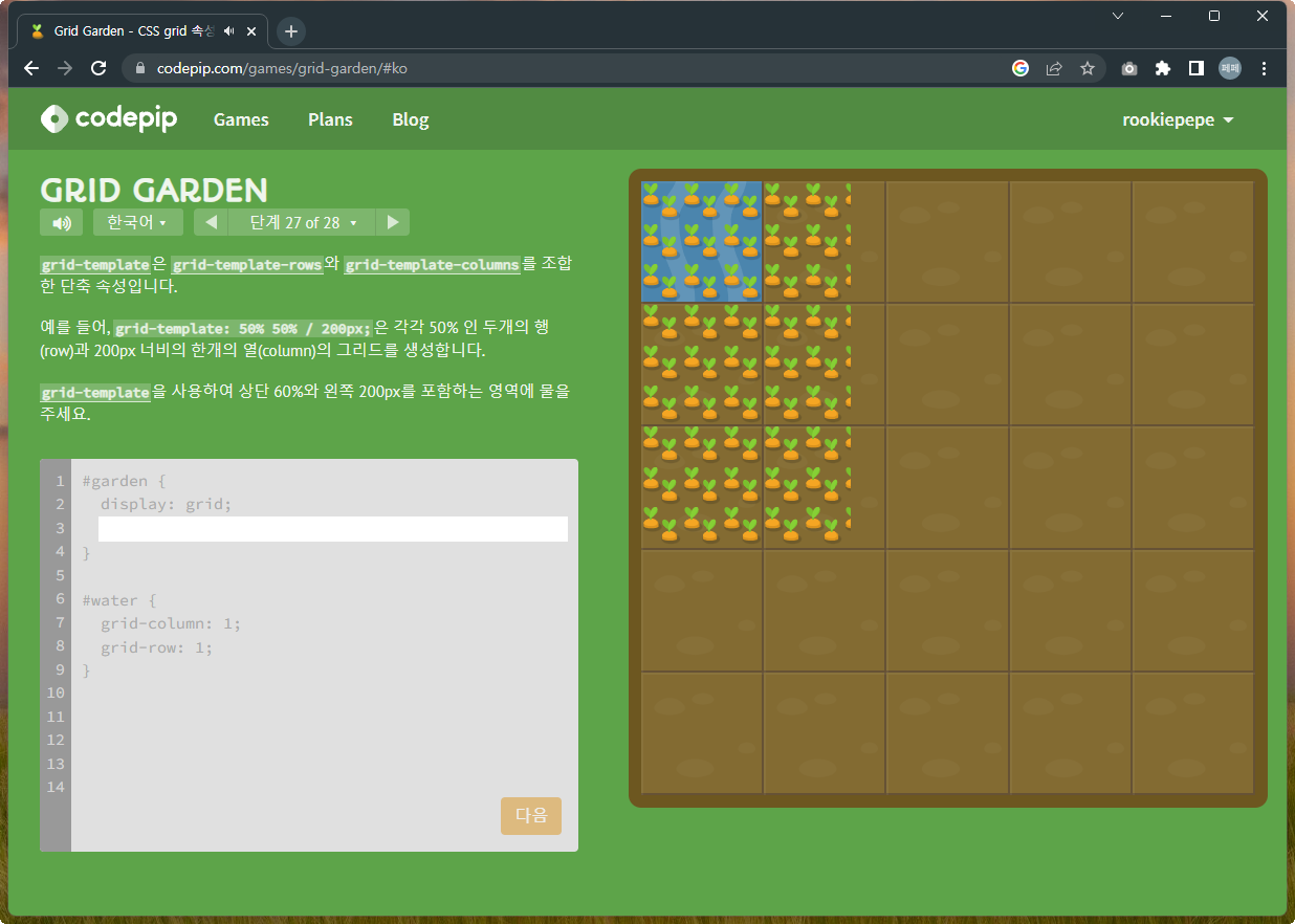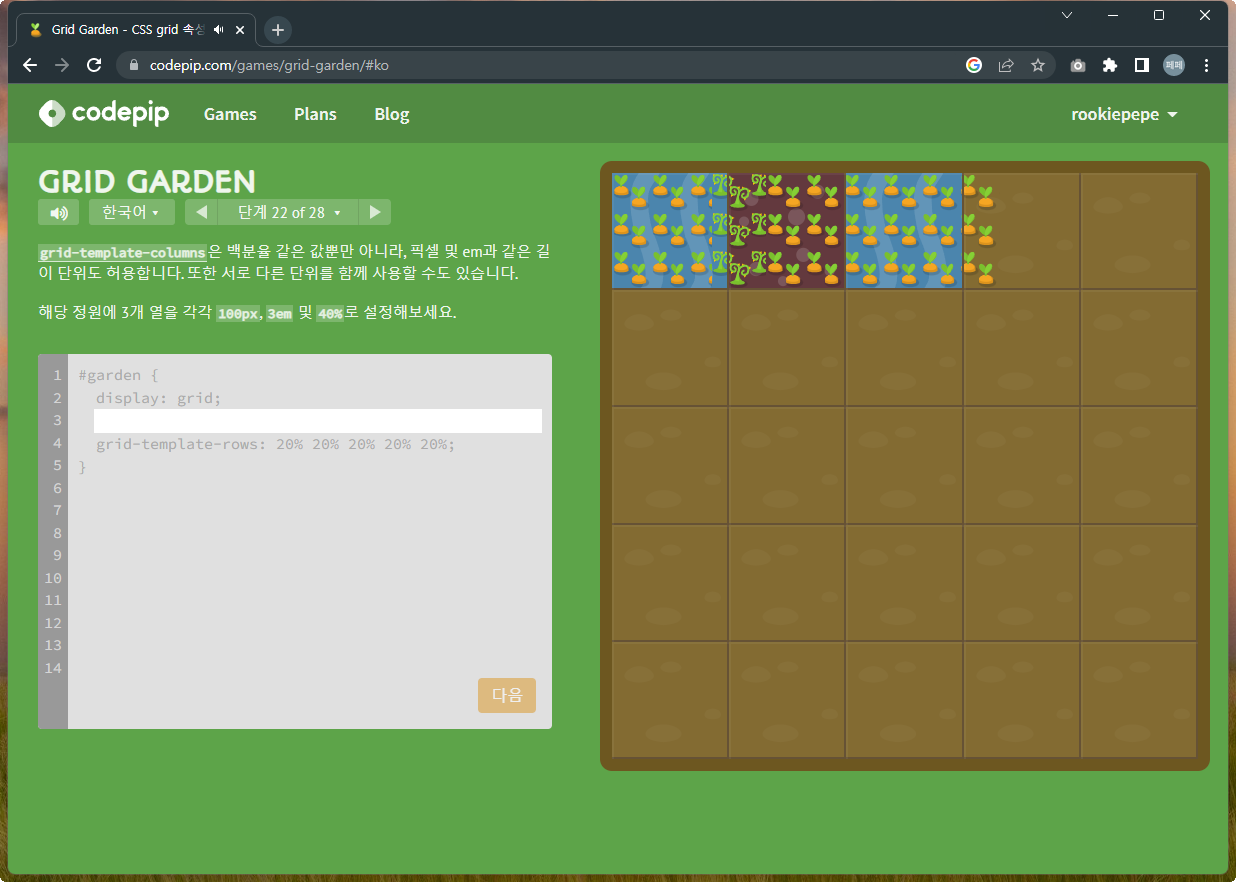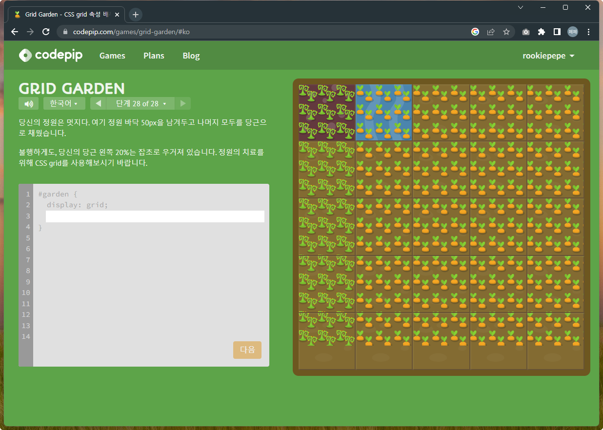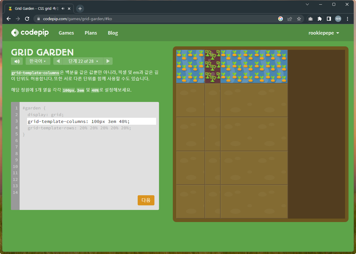 | 재미있게 Grid 공부하기 - Grid Garden 문제풀이 1~14 (0) | 2022.12.07 |