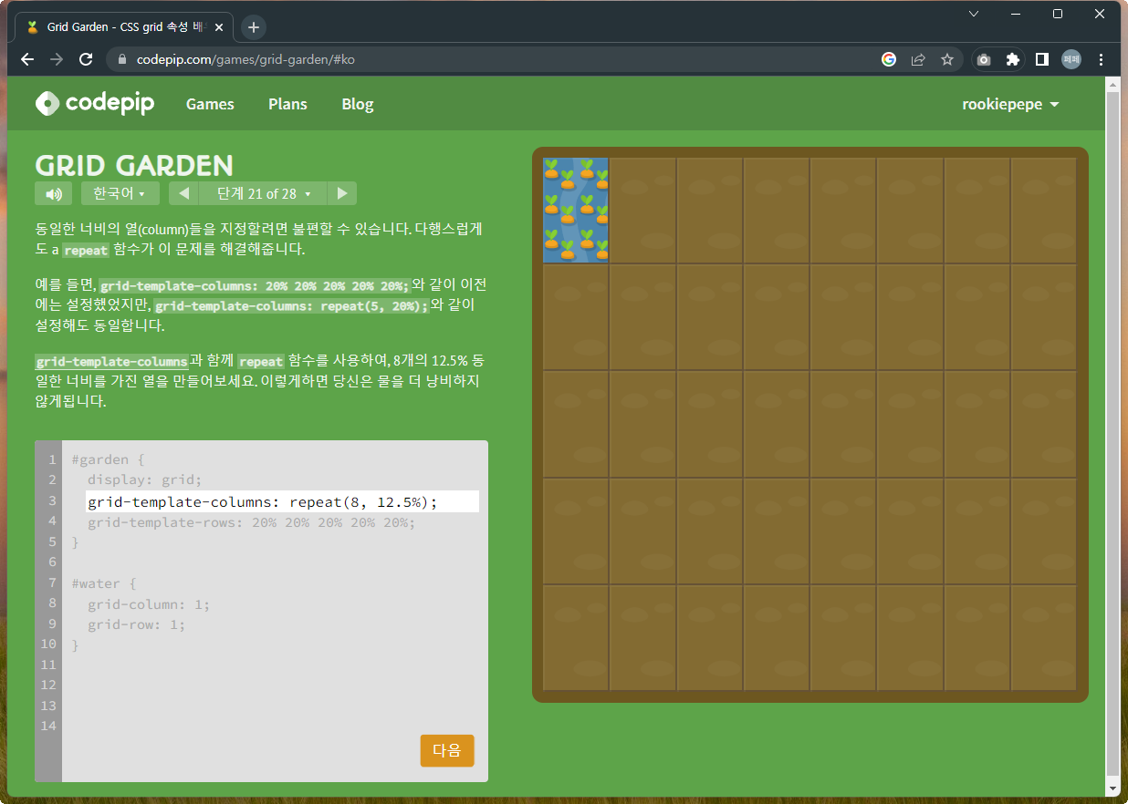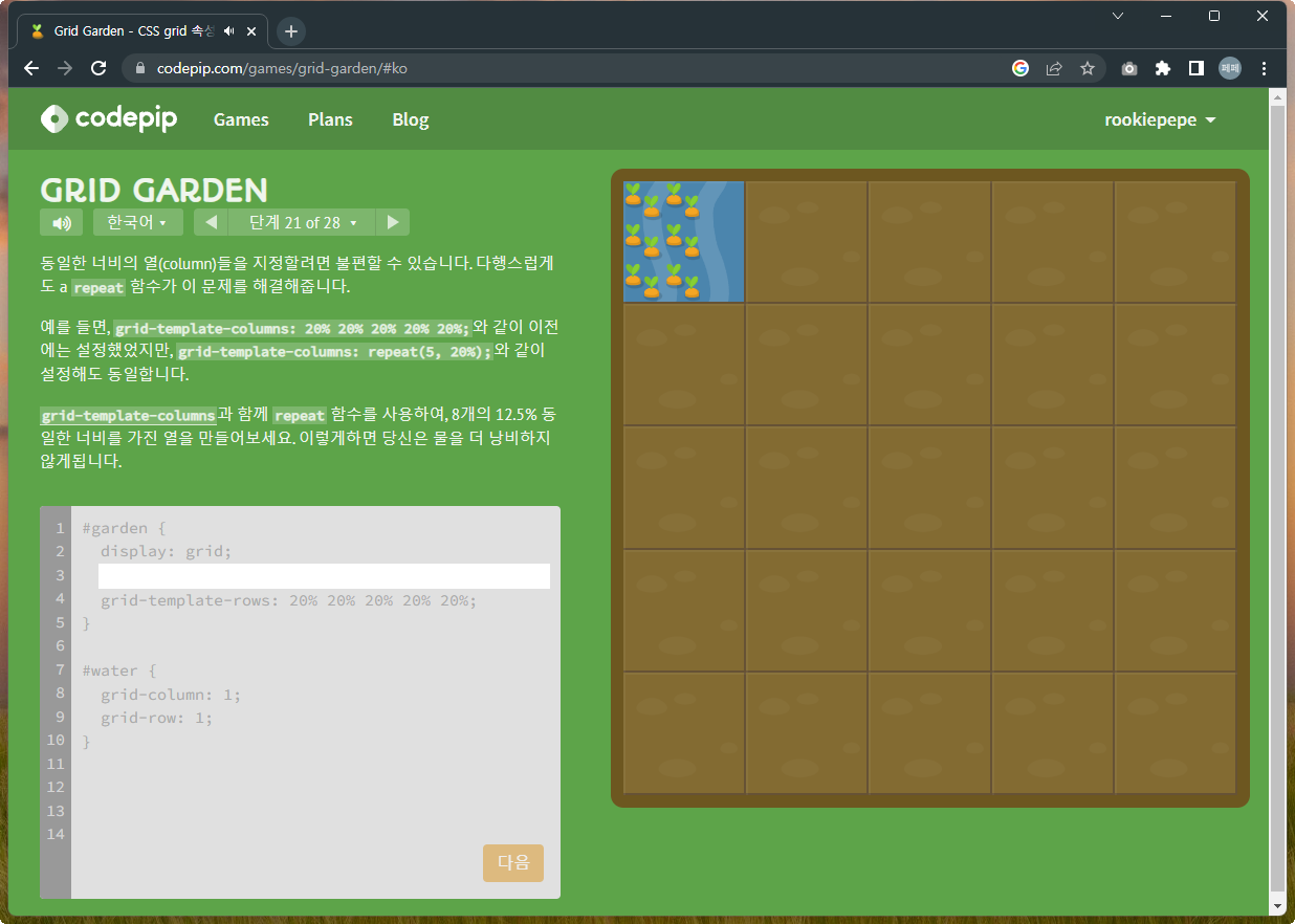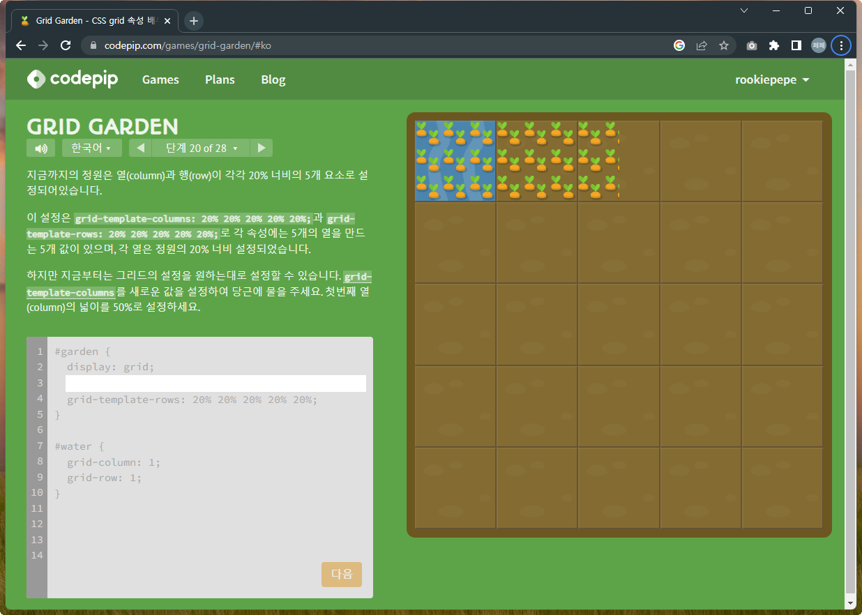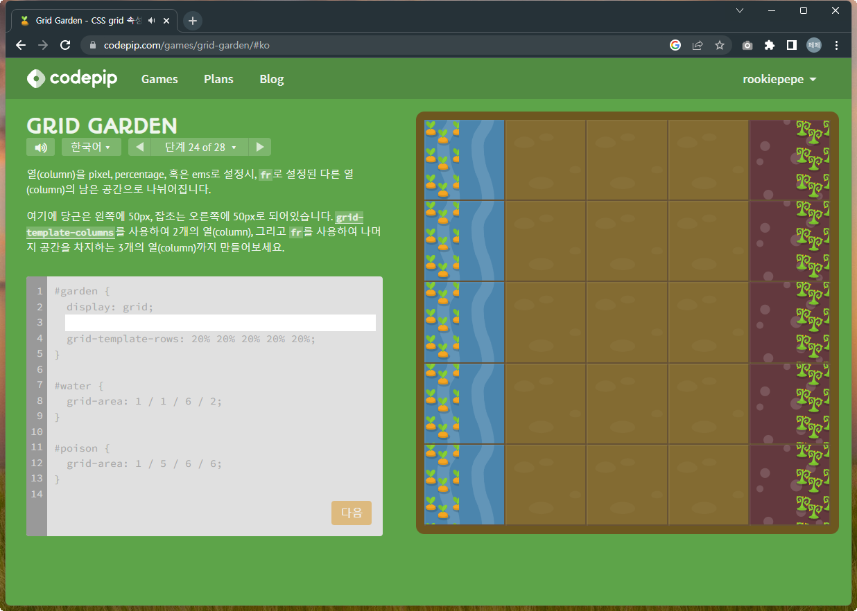 | 재미있게 Grid 공부하기 - Grid Garden 문제풀이 1~14 (0) | 2022.12.07 |