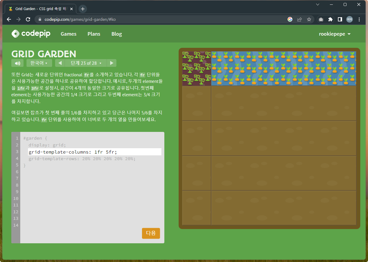 grid의 fr 단위 사용을 학습하는 문제.