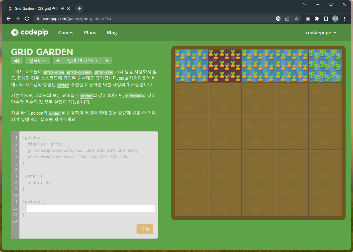 | 재미있게 Flex 공부하기 - Flexbox Froggy 문제풀이 13~24 (0) | 2022.12.02 |