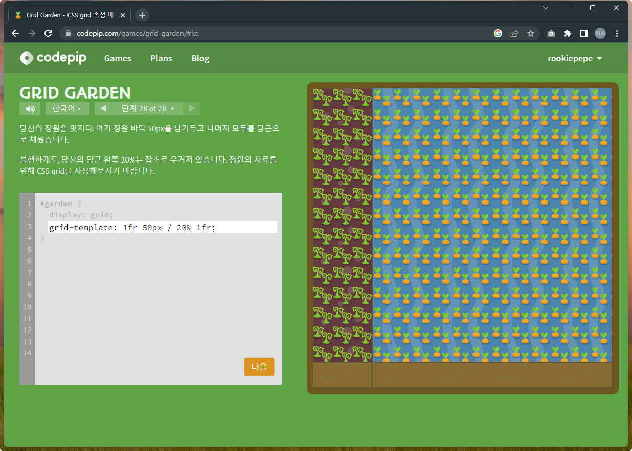 | 재미있게 Grid 공부하기 - Grid Garden 문제풀이 1~14 (0) | 2022.12.07 |