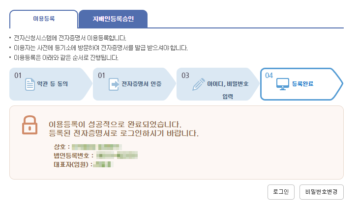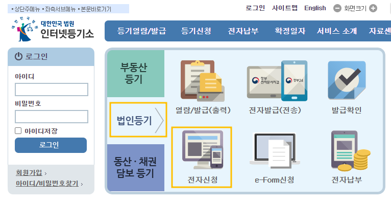 전자증명서 발급 후, 10일 이내 인터넷등기소에 등록하기