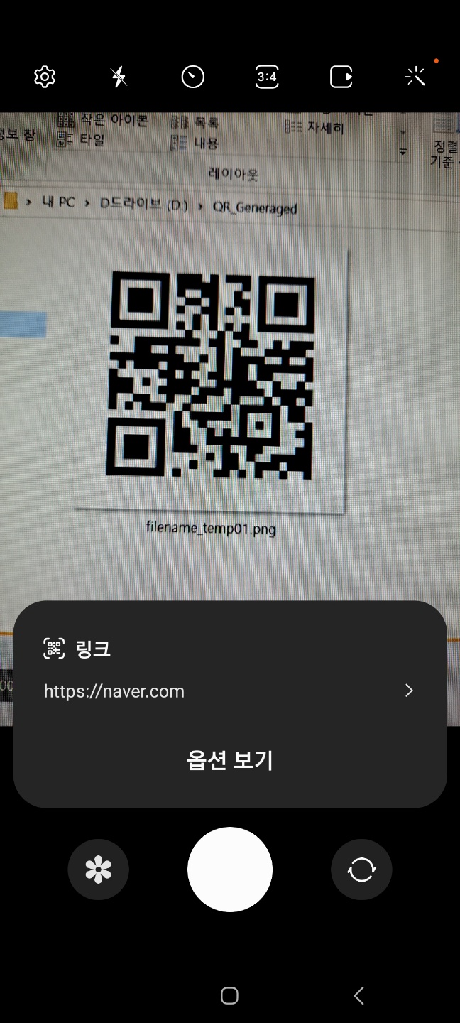 생성된 QR코드를 검증해보기 위해, 휴대폰 카메라로 어디 한번 스캐닝을 해도록 합시다.