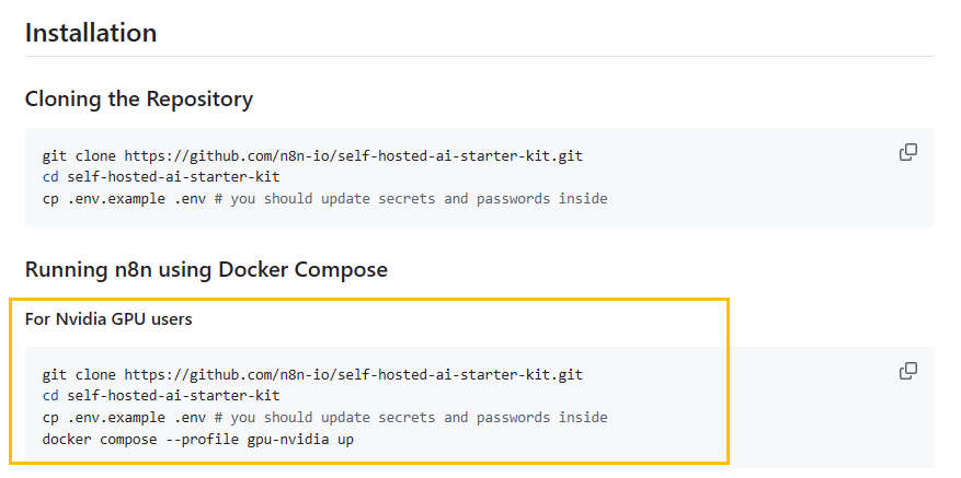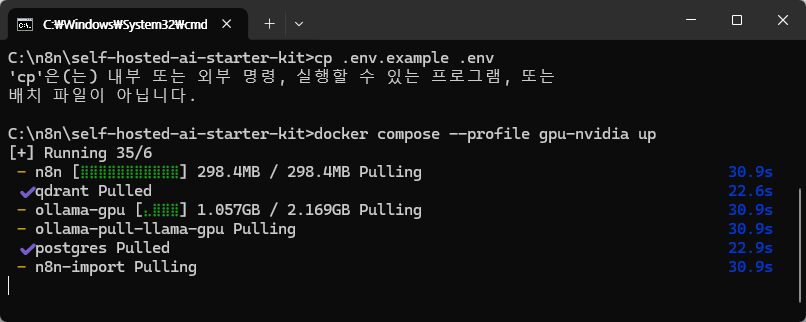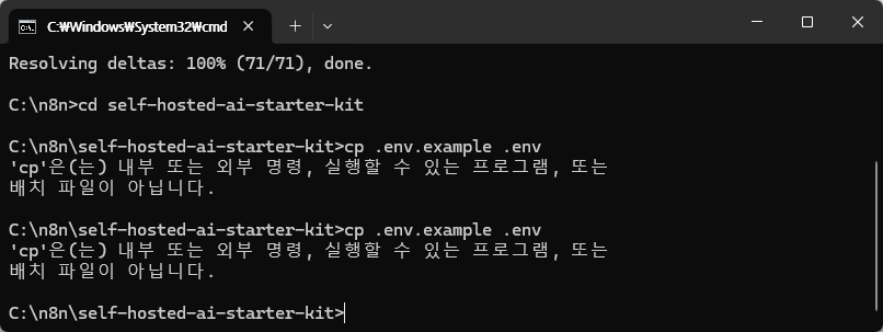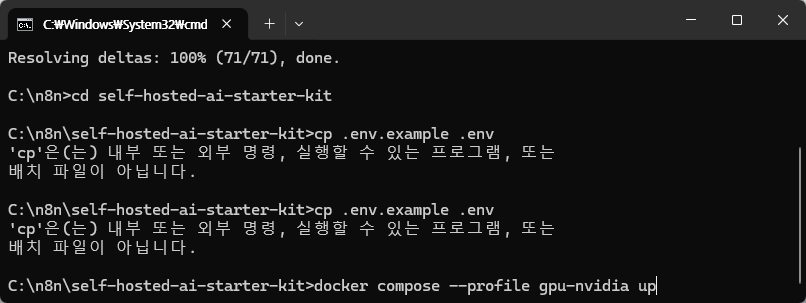 n8n 설치를 위한 git 리파지토리는 다음과 같습니다. https://github.com/n8n-io/self-hosted-ai-starter-kit