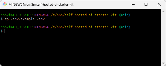 cp .env.example .env 명령어를 통해서 .env 파일을 복사해주었습니다.