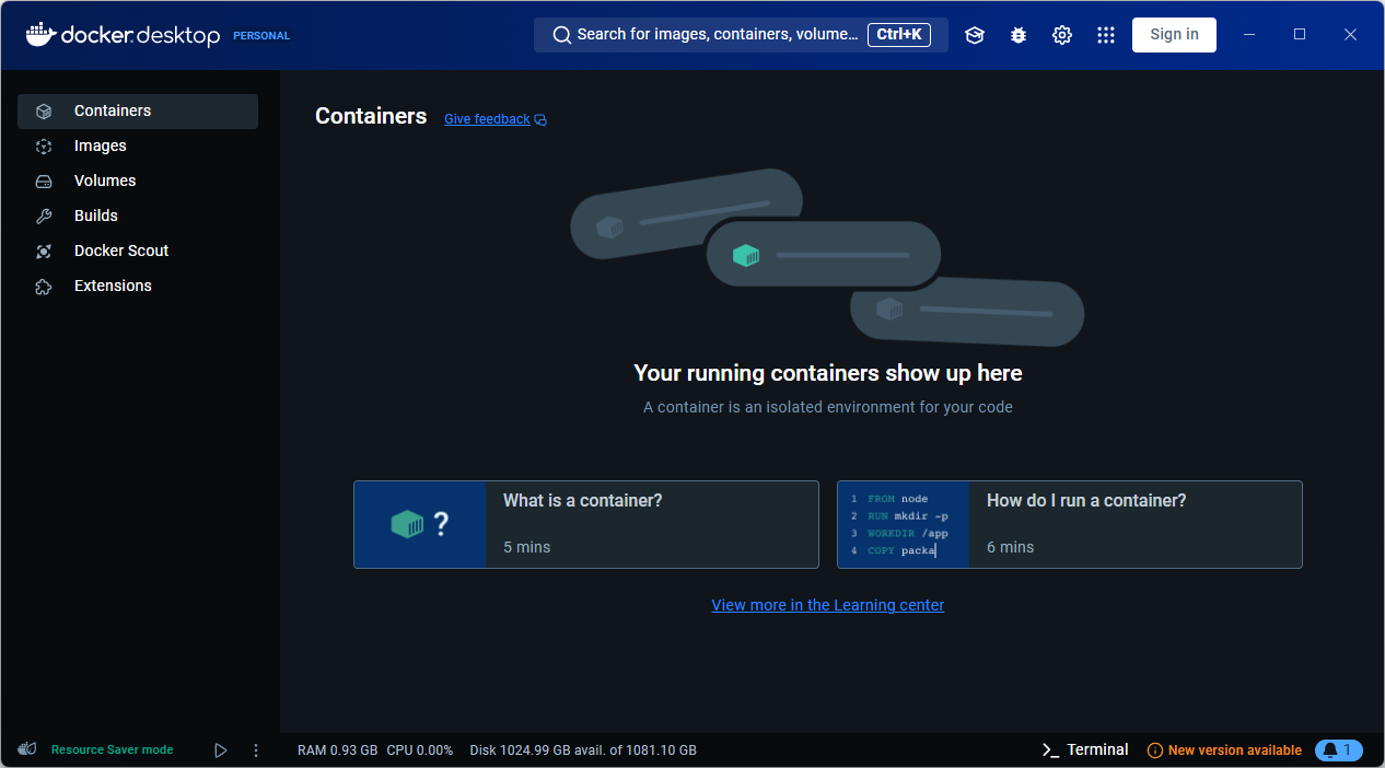 설치가 모두 완료되면, Docker Desktop을 다시 살펴봅니다.
