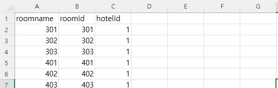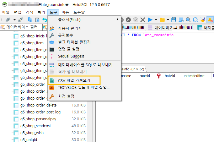 엑셀로 만든 CSV 파일의 데이터를 late_roomsinfo 테이블에 밀어 넣어보려고 합니다.