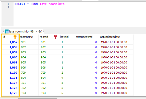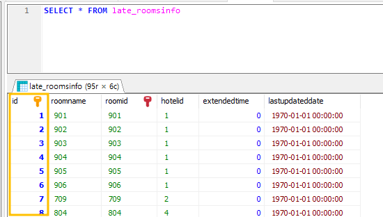 위 구문을 참고하여, late_roomsinfo 테이블에 적용하려면, 다음과 같겠죠?