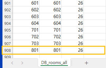 마지막 행은 908행. 첫 행을 제외하고 907개의 데이터가 들어 있는 셈입니다. 26개 호텔에서 보유하고 있는 객실이 총 907개인 셈이죠. 이걸 한번에 DB 테이블에 넣을 수 있다면 참 편하지 않을까? 하는 생각을 해보게 되었습니다.