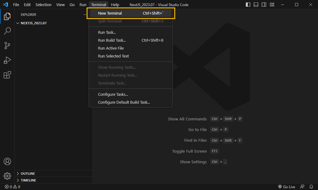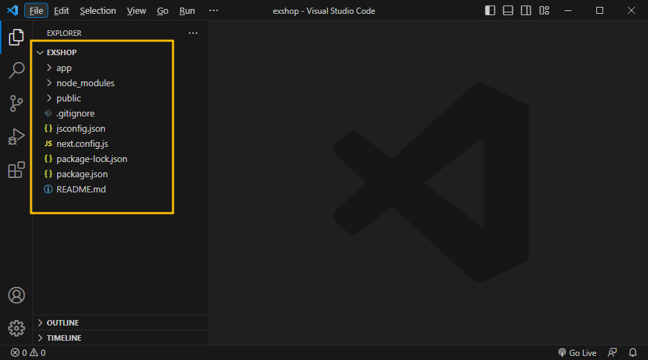 5. 생성된 exshop 폴더를 VSC에서 Open Folder...로 다시 열어줍니다.
