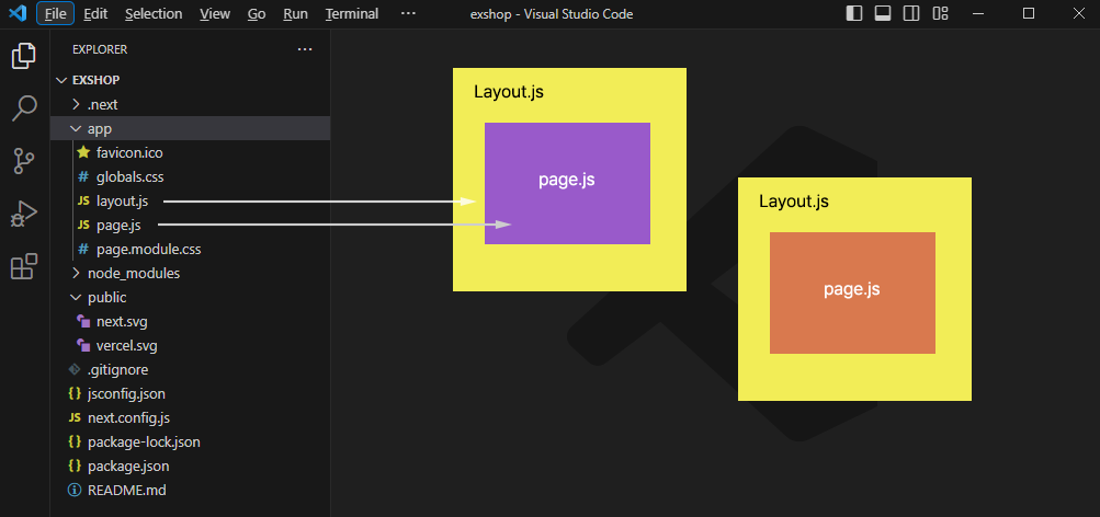 layout.js는 이 page.js를 둘러싸는 외부를 의미하는데요, 다양한 page.js들에 공통적으로 사용됩니다.