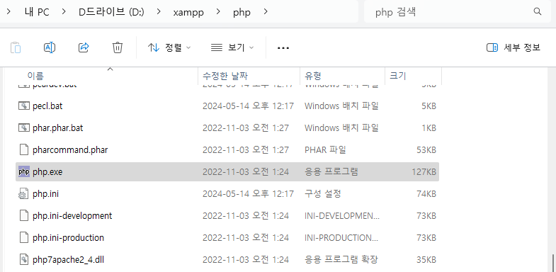 저의 경우 XAMPP 폴더 아래로 경로는 다음과 같습니다.