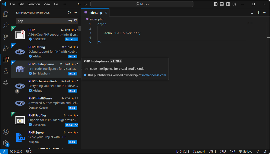 PHP 익스텐션 설치 - PHP Intelephense