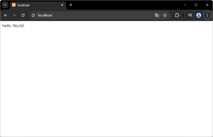 Hello World! 가 잘 표시되었습니다.(Xampp에서 아파치가 실행되고 있어야 합니다!)