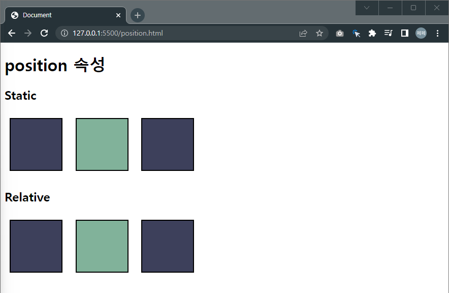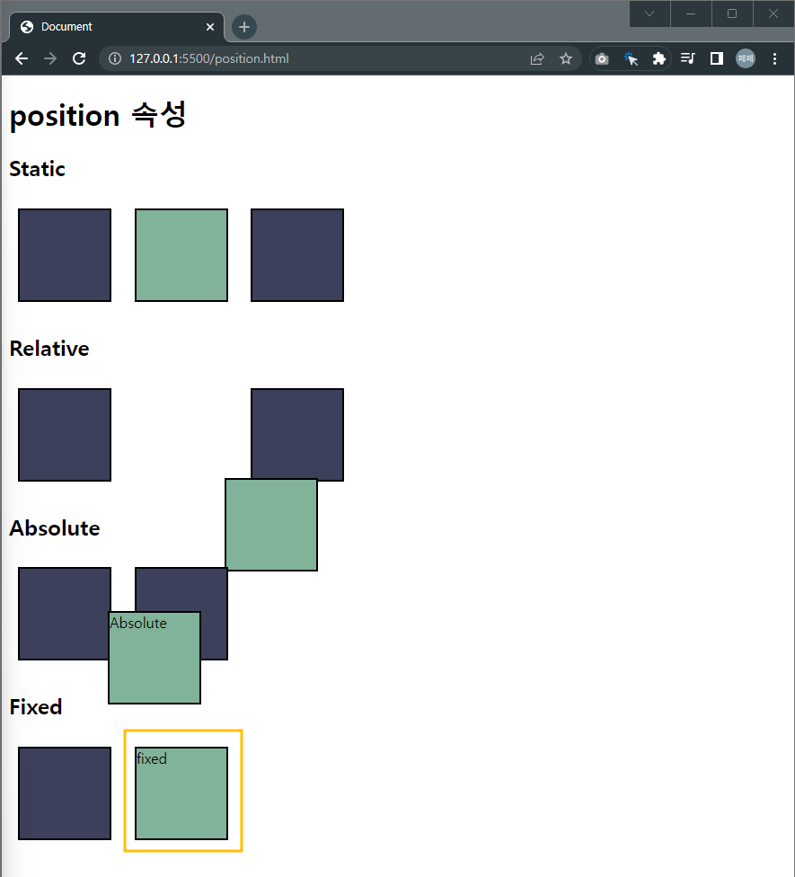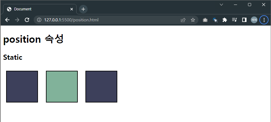 Live Server를 실행해보면, 아래와 같은 형태에서 position에 대한 속성들을 살펴보기로 합니다.