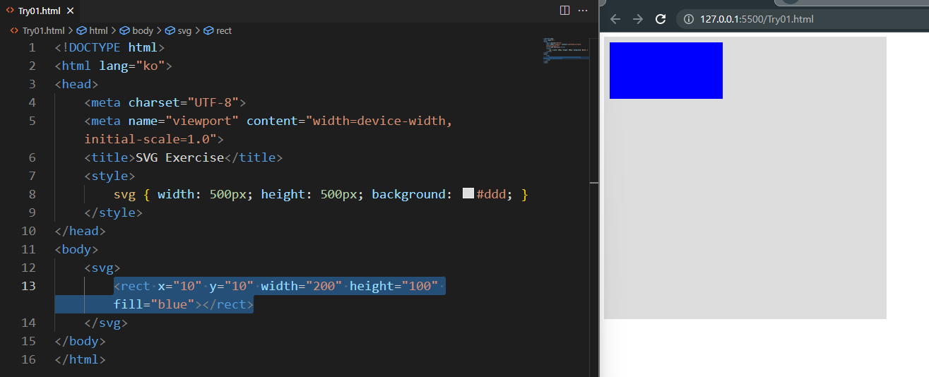 사각형의 색상을 파란색으로 바꿔봅니다.