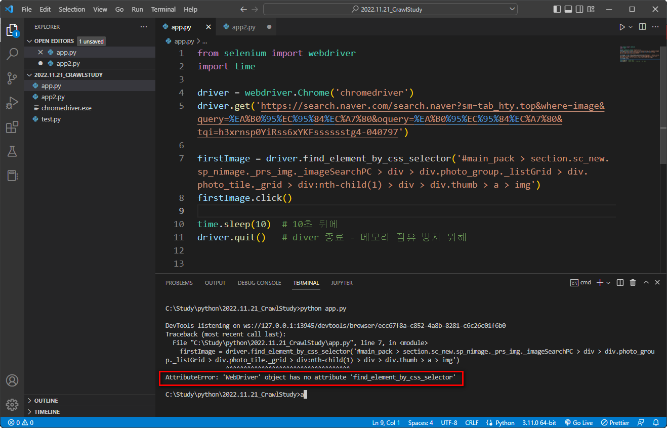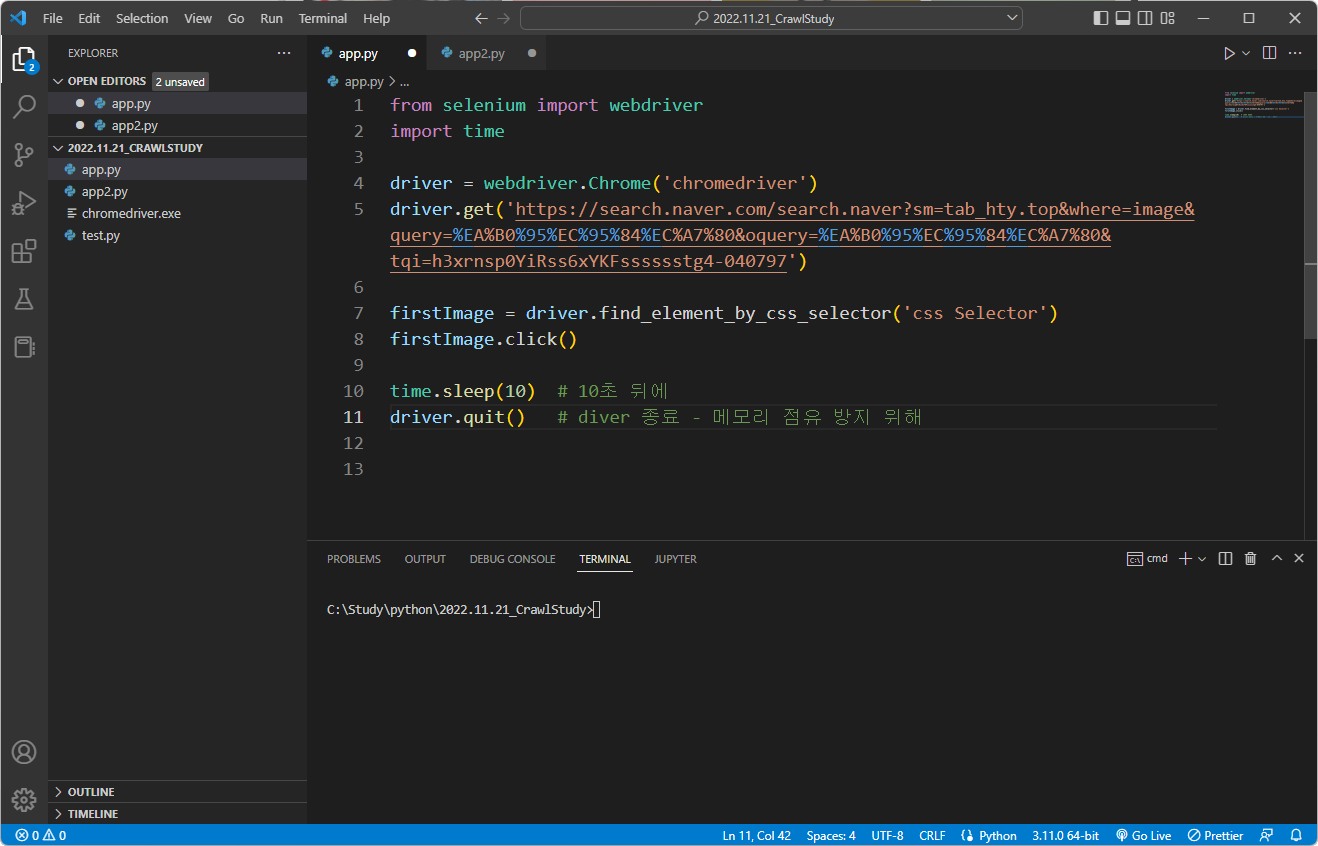 driver.quit() # diver 종료 - 메모리 점유 방지 위해