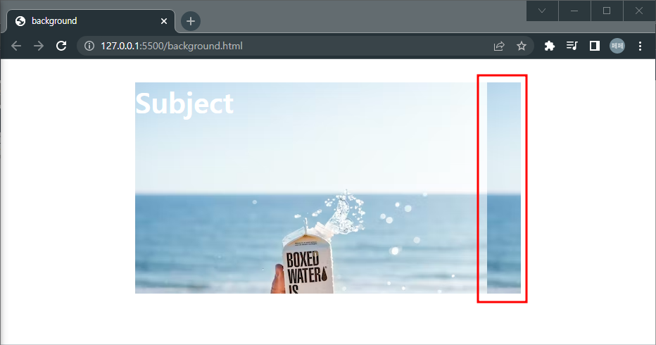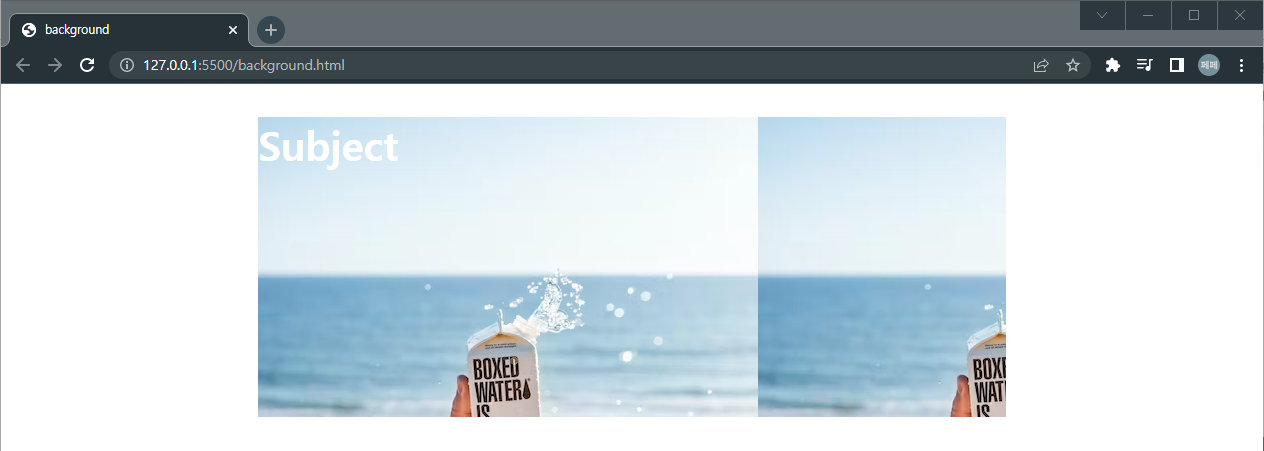 일단은 배경 이미지가 잘 들어갔습니다. 그런데 오른쪽 편에 보면, 이미지의 가로 사이즈가 끝나는 경우, 반복되어 표시된다는 것을 알 수 있습니다. 브라우저를 가로로 크게 늘여보면 아래처럼 쉽게 확인이 가능합니다.