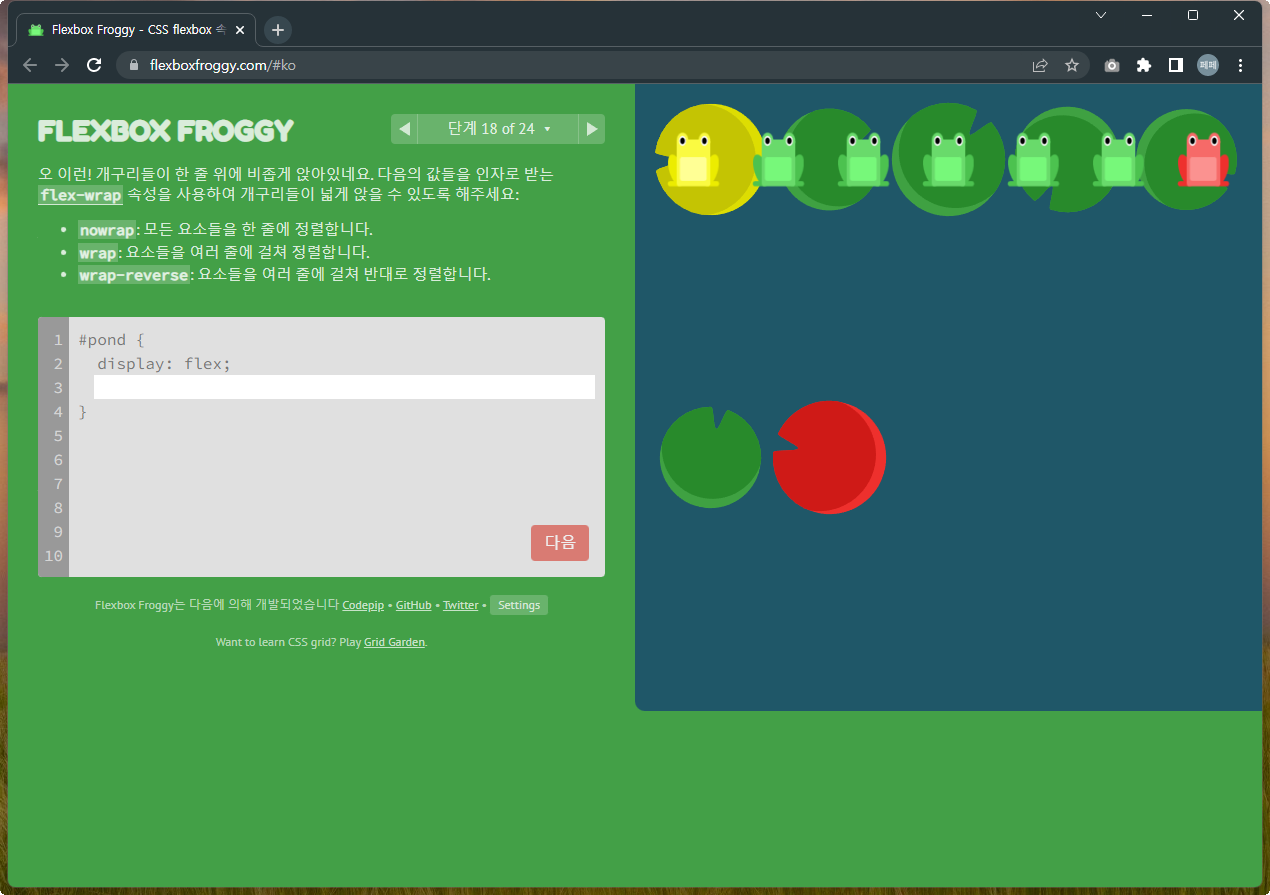 Flexbox Froggy 후반부를 풀어봅시다.